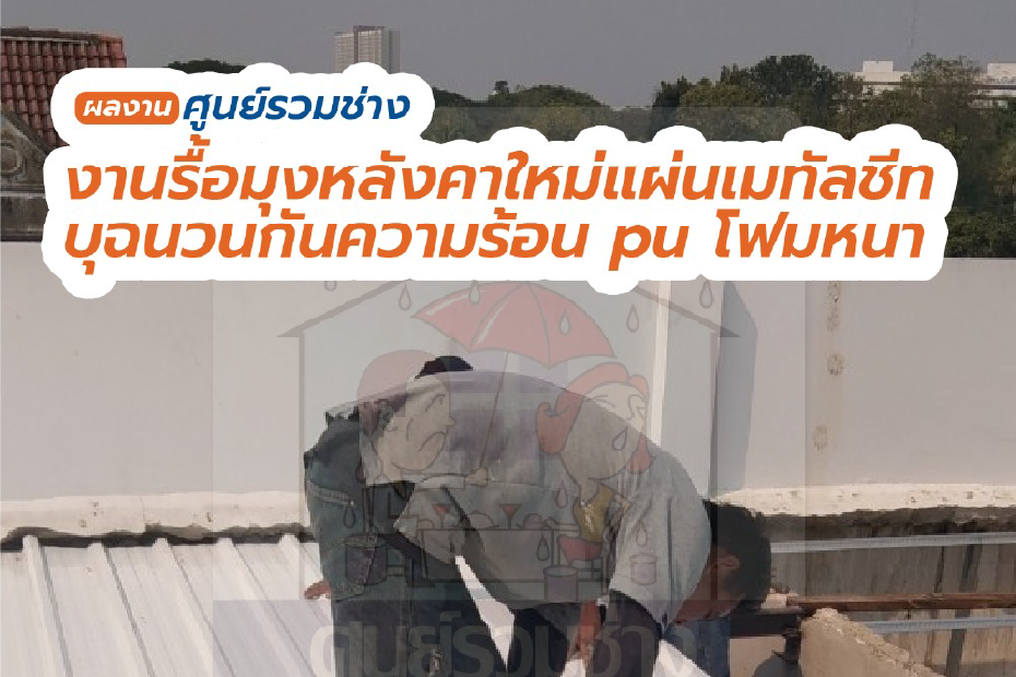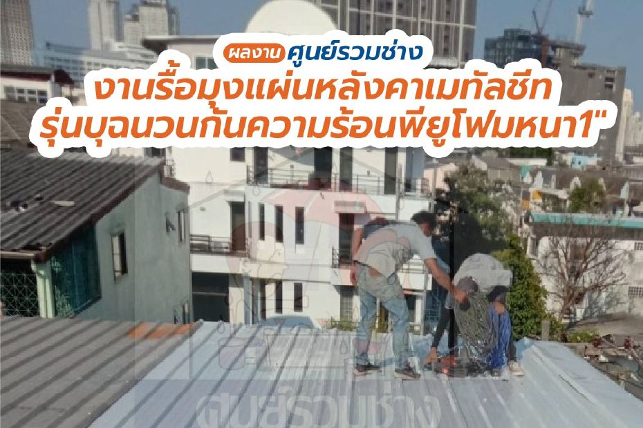 งานรื้อมุงแผ่นหลังคาเมทัลชีทรุ่นบุฉนวนกันความร้อนพียูโฟมหนา1″