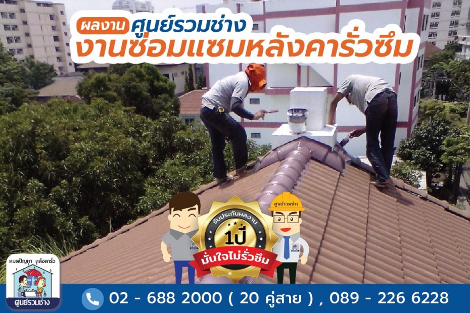 งานซ่อมแซมหลังคารั่วซึมสันครอบหลังคาทั้งหมด