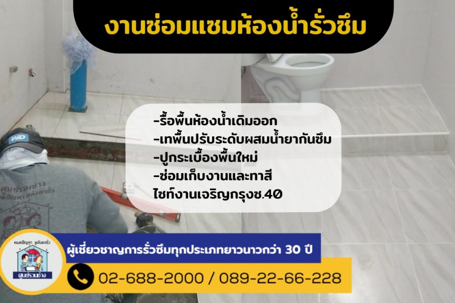 งานซ่อมแซมพื้นห้องน้ำและระเบียงรั่วซึม