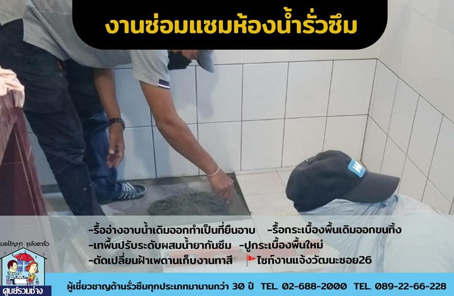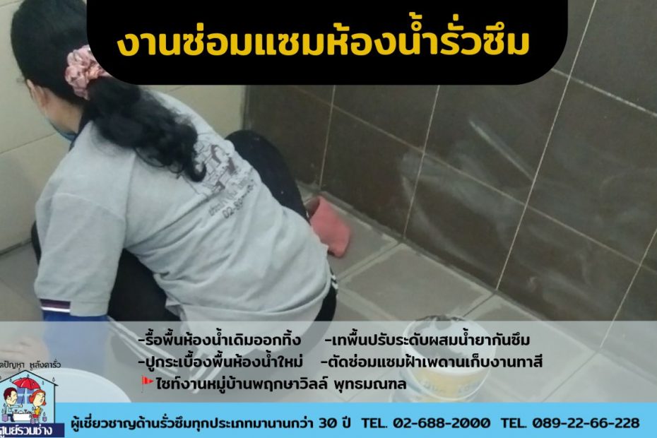 งานซ่อมแซมห้องน้ำรั่วซึมหมู่บ้านพฤกษาวิลล์