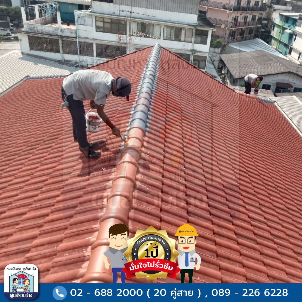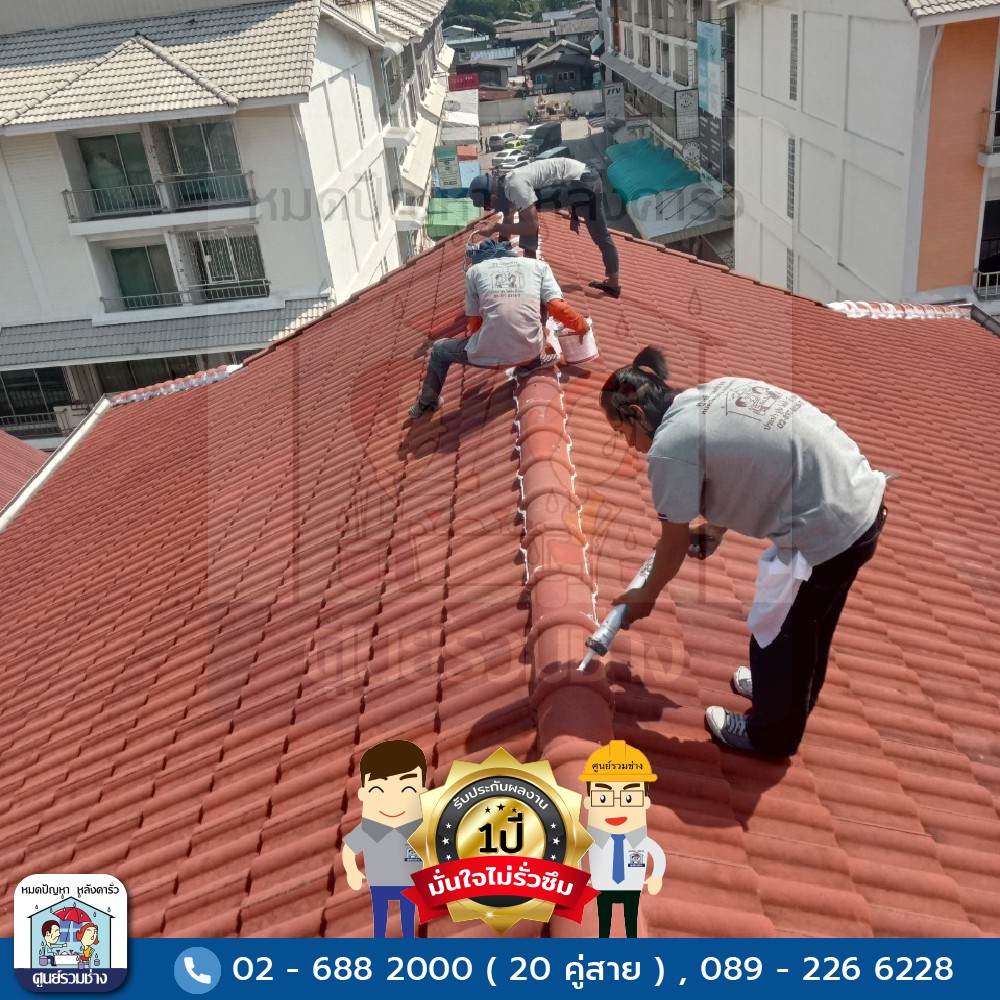 1.งานซ่อมแซมหลังคารั่วซึมบริเวณสันครอบกลางและสันตะเข้