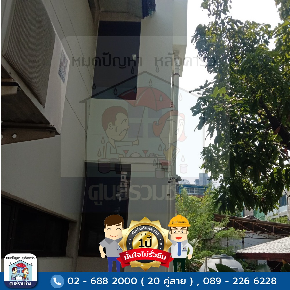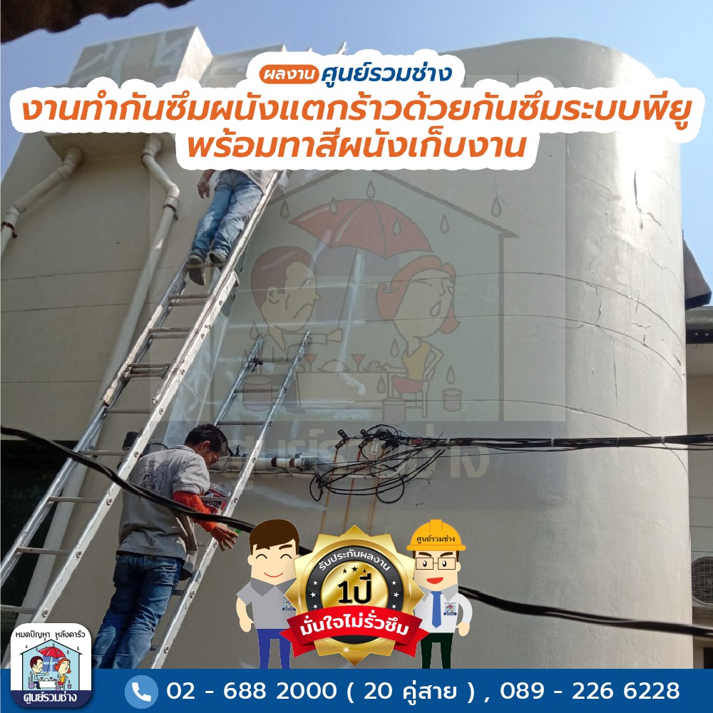 งานทำกันซึมผนังแตกร้าวด้วยกันซึมระบบพียูพร้อมทาสีผนังเก็บงาน