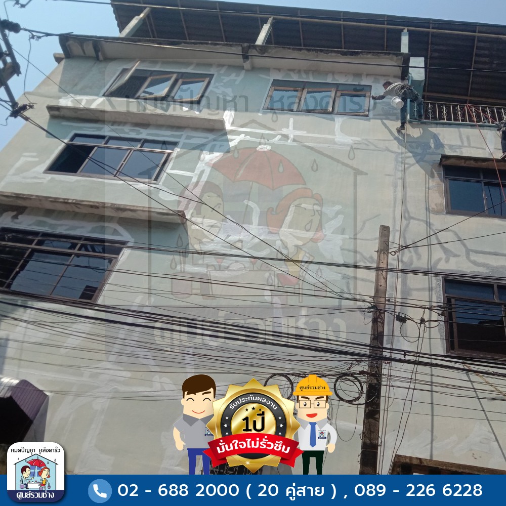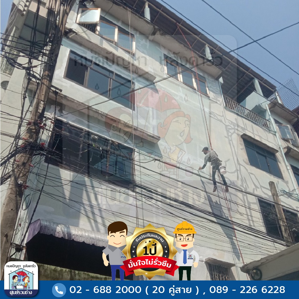 งานโรยตัวทำกันซึมผนังแตกร้าว ![]()