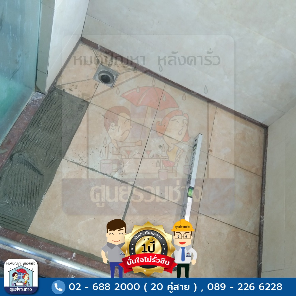 -สกัดกระเบื้องเดินท่อน้ำร้อนใหม่พร้อมปูกระเบื้องเก็บงาน