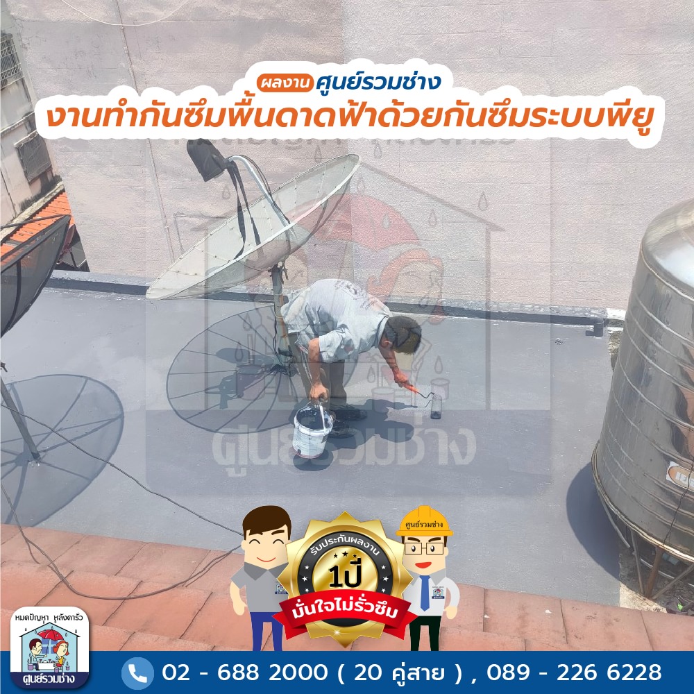 งานทำกันซึมพื้นดาดฟ้าด้วยกันซึมระบบพียู