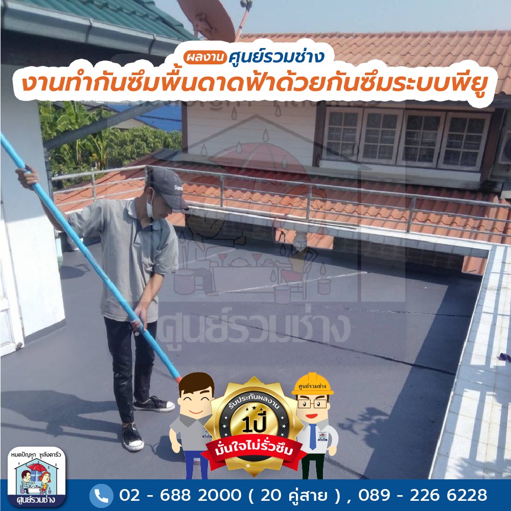 งานทำกันซึมพื้นดาดฟ้าด้วยกันซึมระบบพียู