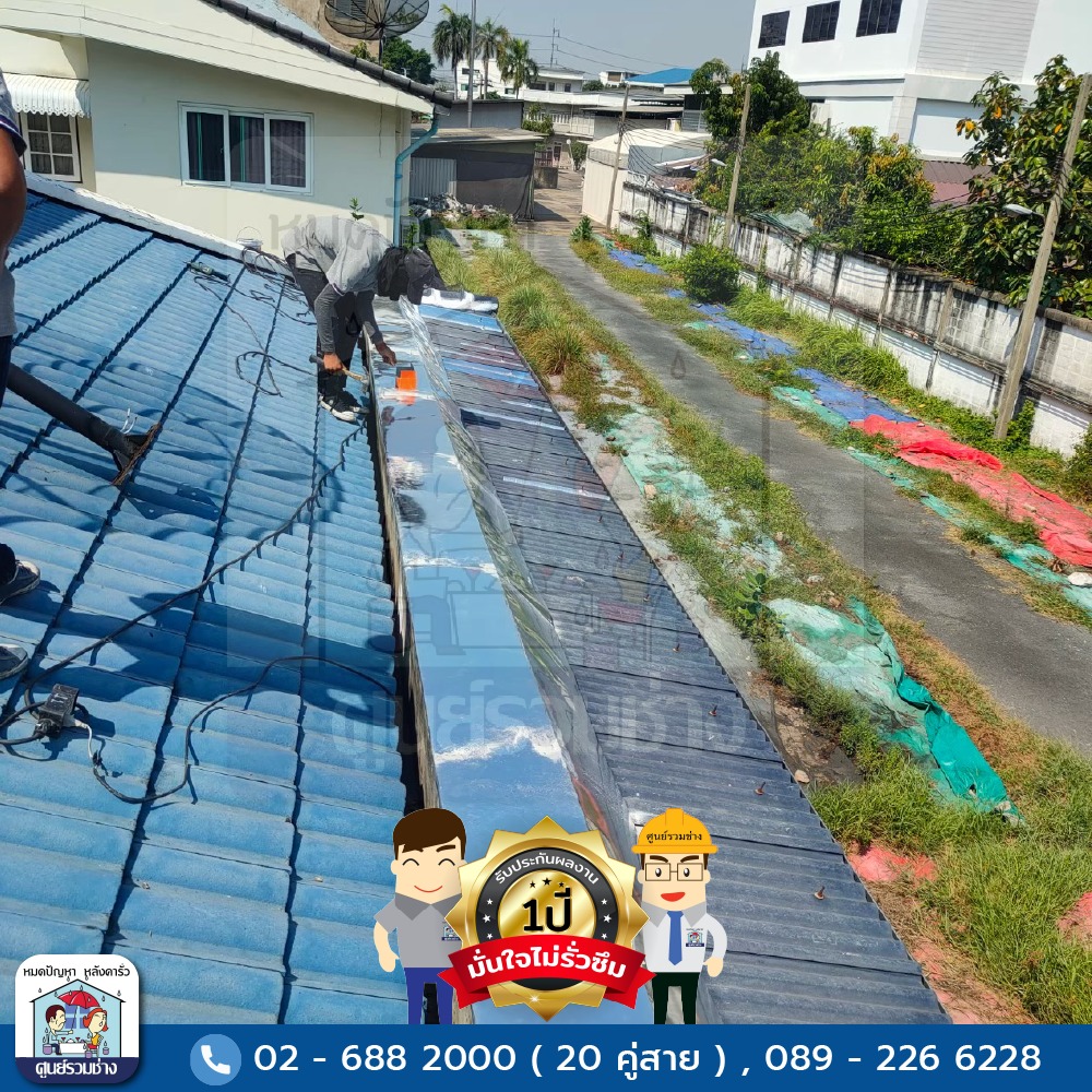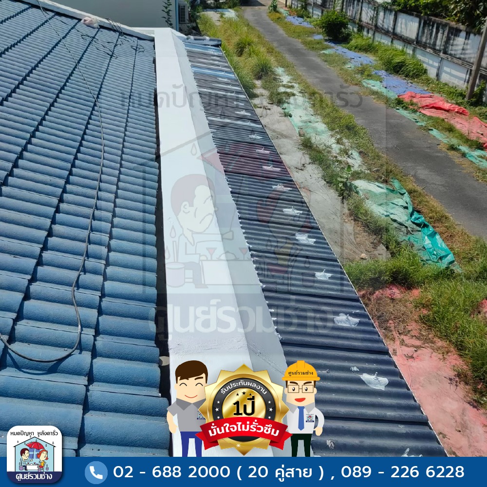 งานซ่อมแซมหลังคารั่วซึมบริเวณปีกนกหลังคาส่วนต่อเติม