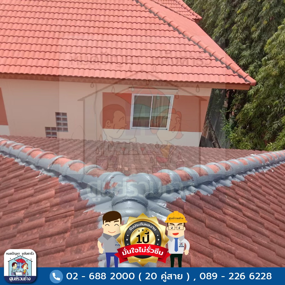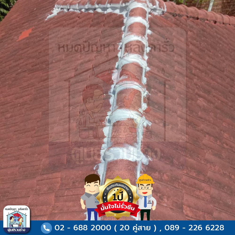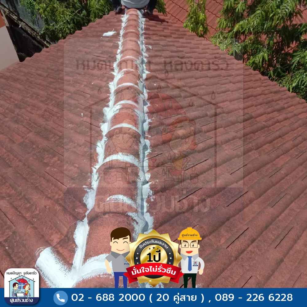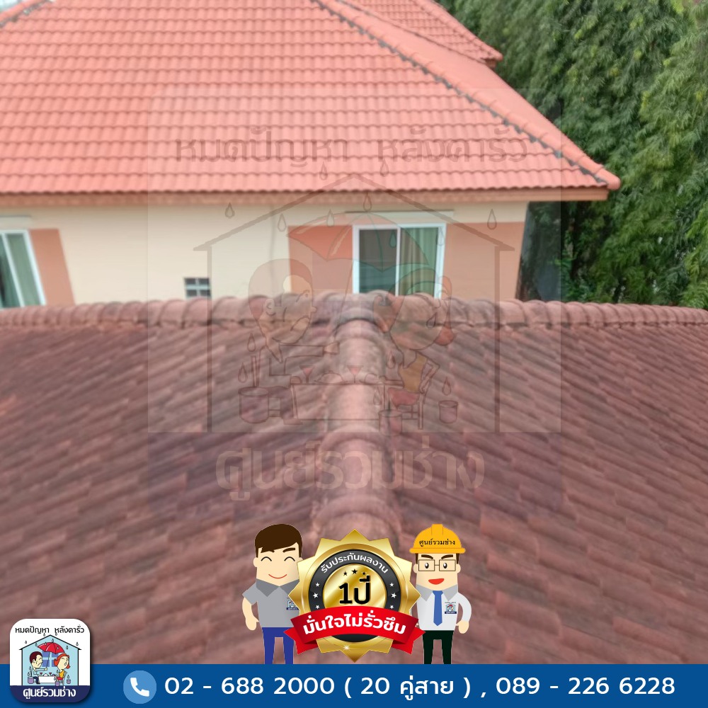 ซ่อมแซมหลังคารั่วซึมบริเวณสันครอบหลังคาทั้งหมด