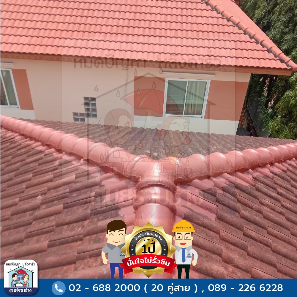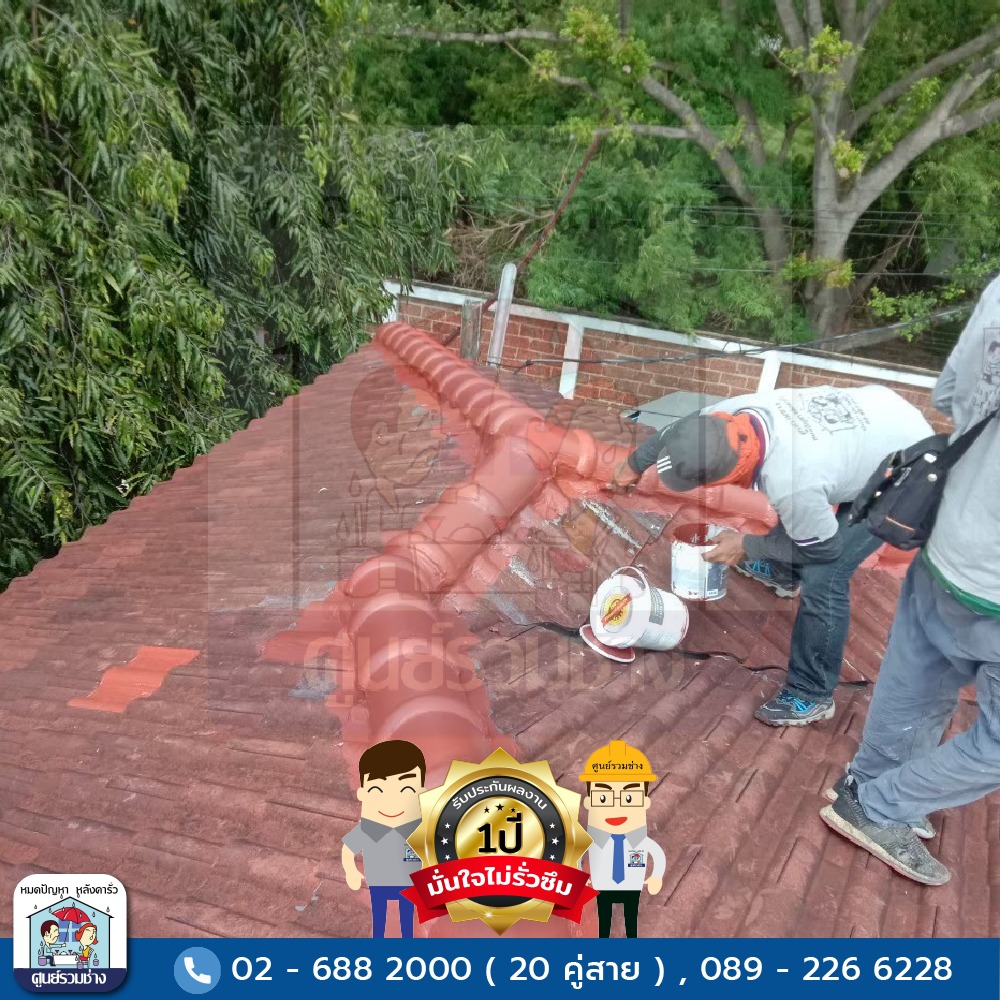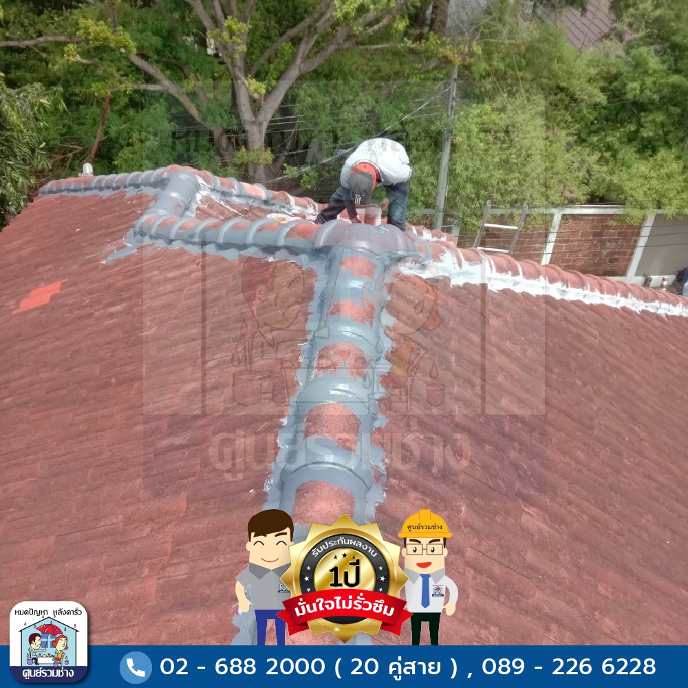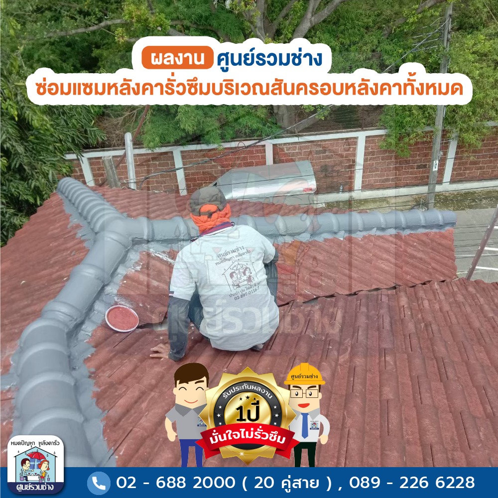 ซ่อมแซมหลังคารั่วซึมบริเวณสันครอบหลังคาทั้งหมด