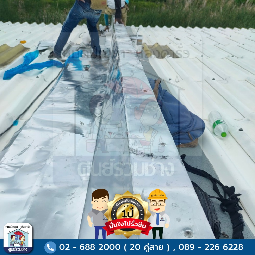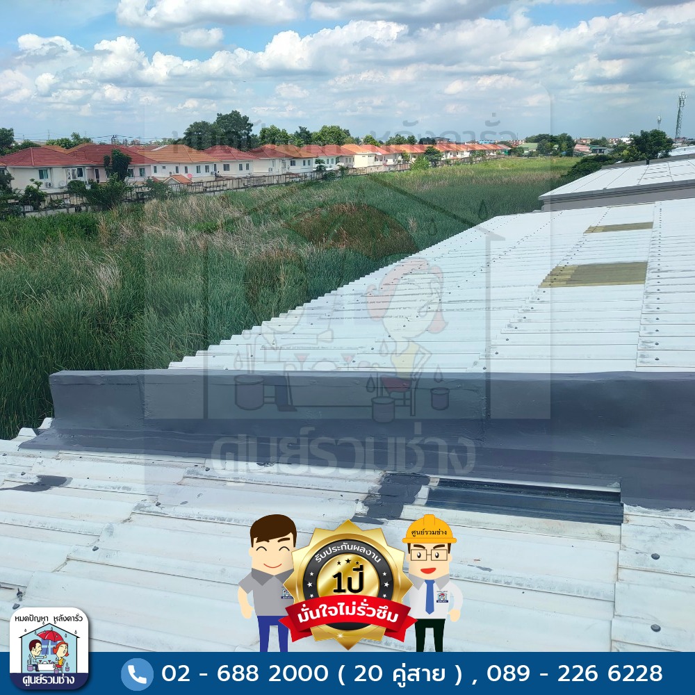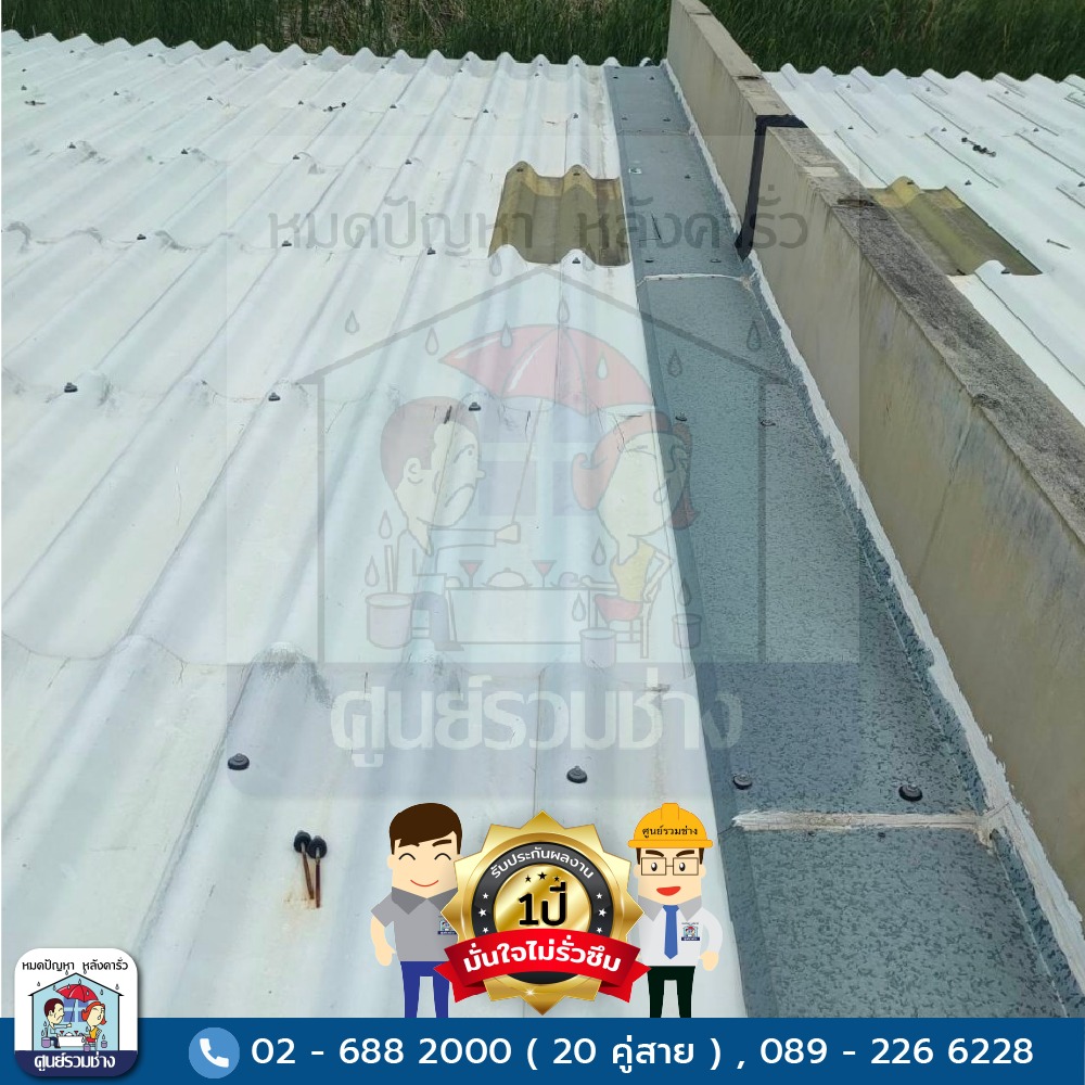 งานซ่อมแซมหลังคารั่วซึมบริเวณผนังปูนและแนวปีกนกหลังคา