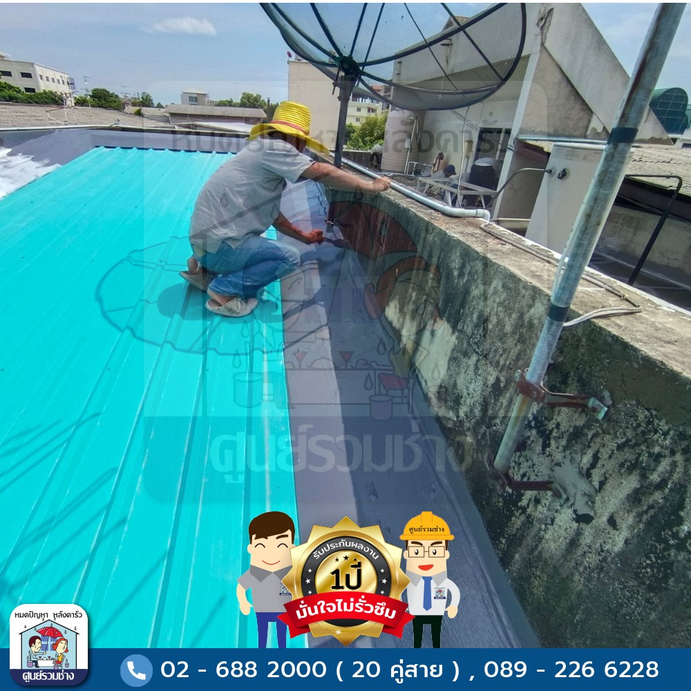 ศูนย์รวมช่าง ซ่อมหลังคารั่วซึม ดาดฟ้ารั่วซึม ห้องน้ำรั่วซึม โรยตัวซ่อมรั่วอาคารสูง งานรั่วซึมทุกประเภททั้งงานบ้าน องค์กร โกดัง โรงงาน ฯลฯ ด้วยการบริการที่ครบวงจรและเทคโนโลยีที่ทันสมัยรวมถึงกันซึมที่นำเข้าจากต่างประเทศมีความยืดหยุ่นและมีประสิทธิภาพสูง ด้วยประสบการณ์การทำงานด้านรั่วซึมมากกว่า 30 ปี พร้อมรับประกันผลงาน ที่จะทำให้คุณมั่นใจไว้วางใจให้เราดูแล
