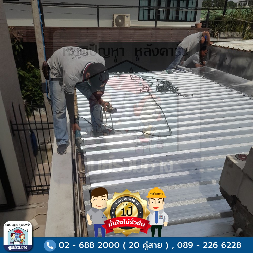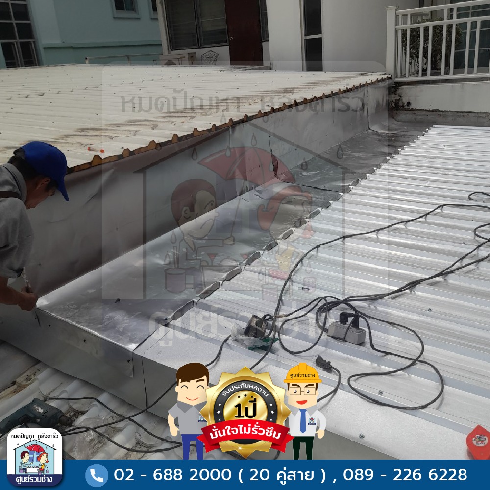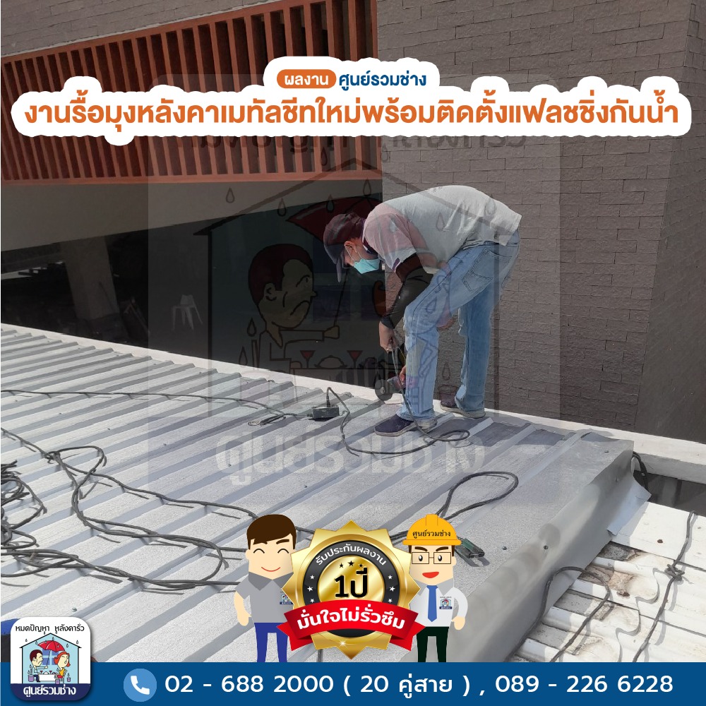 งานรื้อมุงหลังคาเมทัลชีทใหม่พร้อมติดตั้งแฟลชชิ่งกันน้ำ
