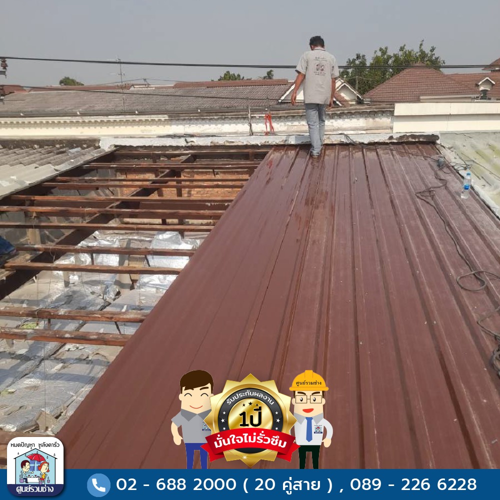 งานรื้อมุงหลังคาเมทัลชีทบุฉนวนกันร้อนพียูโฟมหนา1″ บ้านทาวน์เฮาส์