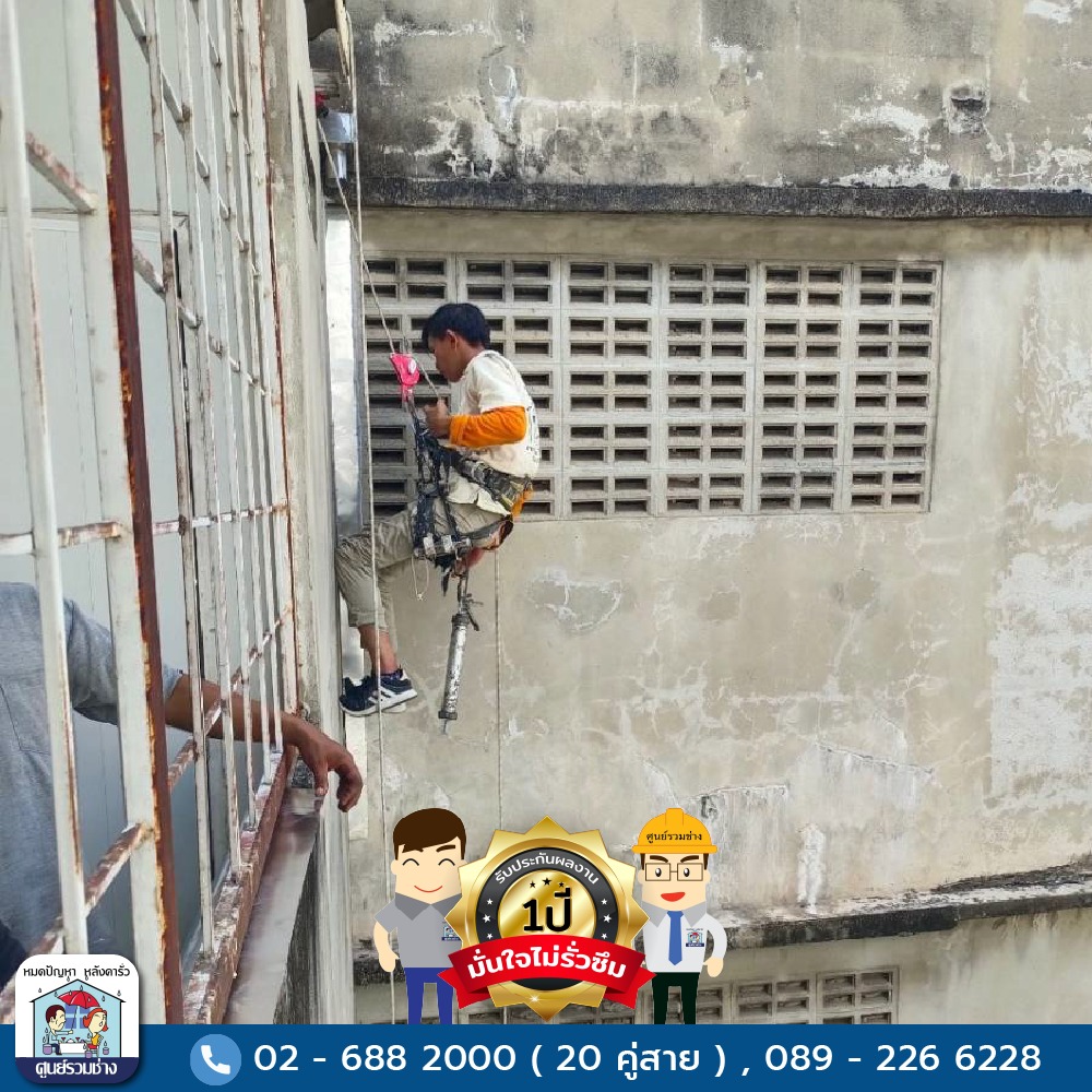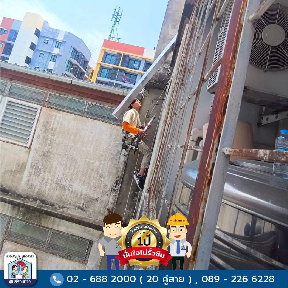 งานโรยตัวซ่อมแซมน้ำรั่วซึมบริเวณผนังชั้น 2-5