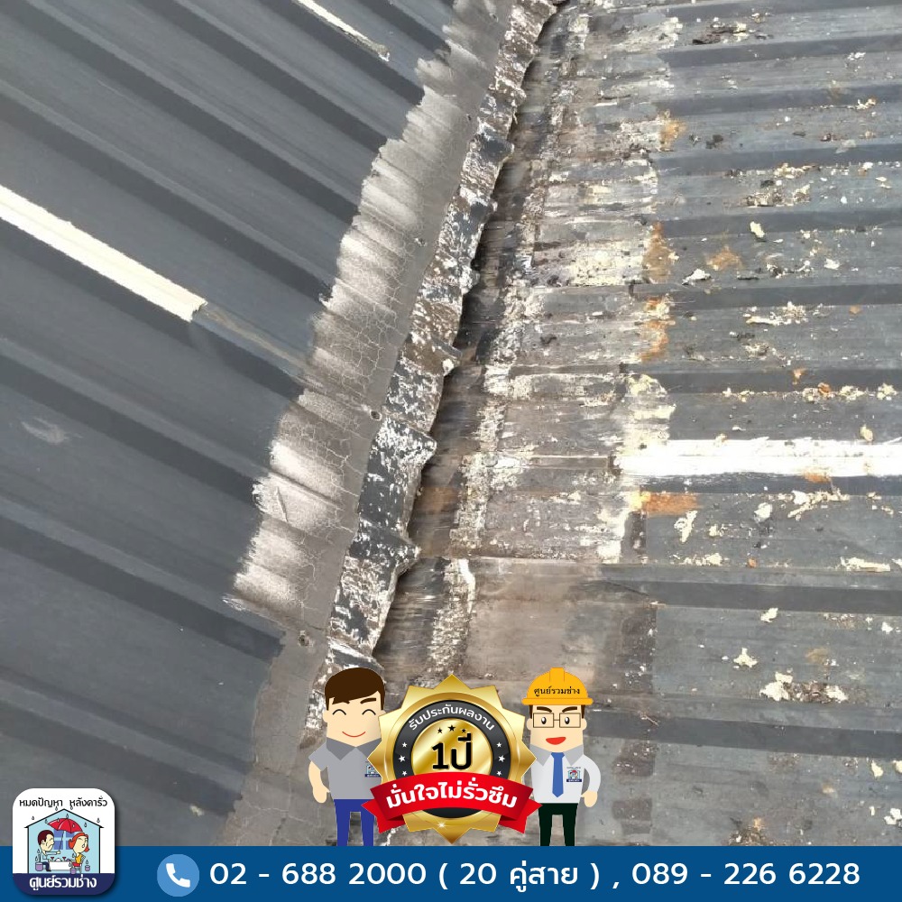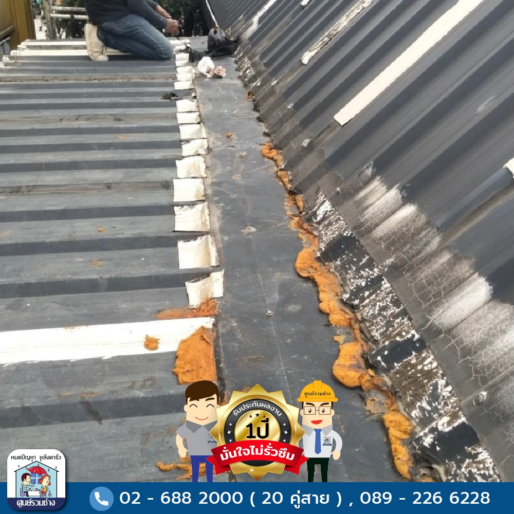 ซ่อมแซมหลังคารั่วซึมบริเวณรอยต่อหลังคาส่วนต่อเติม