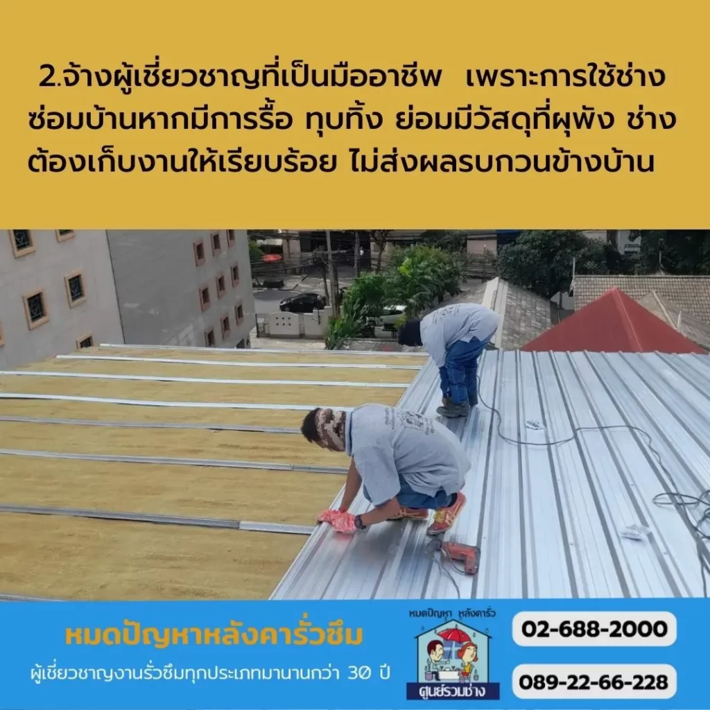 2.จ้างผู้เชี่ยวชาญที่เป็นมืออาชีพ เพราะการใช้ช่างซ่อมบ้านหากมีการรื้อ ทุบทิ้ง ย่อมมีวัสดุที่ผุพัง ช่างต้องเก็บงานให้เรียบร้อย ไม่ส่งผลรบกวนข้างบ้าน