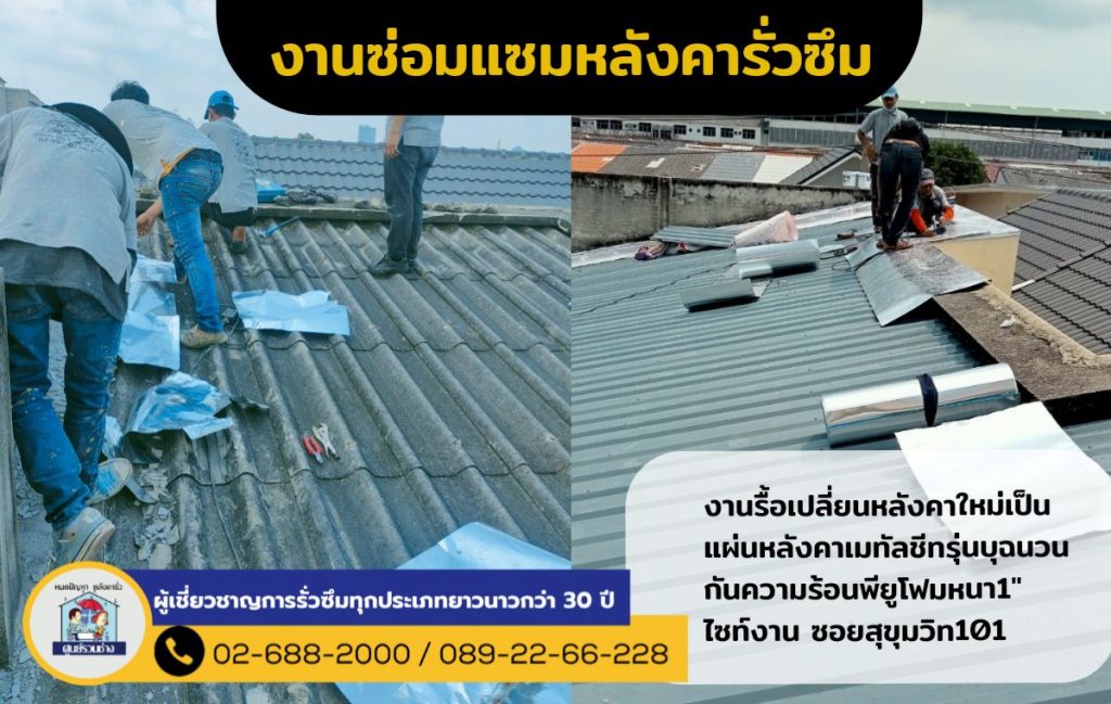 งานรื้อเปลี่ยนหลังคาใหม่เป็นแผ่นหลังคาเมทัลชีทรุ่นบุฉนวนกันความร้อนพียูโฟมหนา1″🏠ไซท์งานซอยสุขุมวิท101………….🚩หมดปัญหาการรั่วซึมทุกประเภทตัวอย่างผลงานของศูนย์รวมช่าง : https://bit.ly/2ZIZQ5V……👨🔧ผู้เชี่ยวชาญด้านรั่วซึมทุกประเภทมานานกว่า 30 ปี📲TEL. 02-688-2000 ทั้งหมด 20 คู่สาย📲TEL. 089-22-66-228 inbox : m.me/soonruamchang1website : http://www.soonruamchang.com/…………..ศูนย์รวมช่าง ซ่อมหลังคารั่วซึม ดาดฟ้ารั่วซึม ห้องน้ำรั่วซึม โรยตัวซ่อมรั่วอาคารสูง งานรั่วซึมทุกประเภททั้งงานบ้าน องค์กร โกดัง โรงงาน ฯลฯ ด้วยการบริการที่ครบวงจรและเทคโนโลยีที่ทันสมัยรวมถึงกันซึมที่นำเข้าจากต่างประเทศมีความยืดหยุ่นและมีประสิทธิภาพสูง ด้วยประสบการณ์การทำงานด้านรั่วซึมมากกว่า 30 ปี พร้อมรับประกันผลงาน ที่จะทำให้คุณมั่นใจไว้วางใจให้เราดูแล .#งานซ่อมรั่วทุกประเภท #ผนังรั่วซึม #ซ่อมแซมกระเบื้องหลังคารั่วซึม #ปัญหารั่วซึม #น้ำรัว #น้ำซึม #รั่วซึม #ศูนย์รวมช่าง #กันซึม #ดาดฟ้ารั่วซึม #โรยตัว #บ้านรั่วทำไงดี #ห้องน้ำรั่วซึม #ช่างซ่อมหลังคาที่เชี่ยวชาญ #ฝ้าเพดานรั่วซึม #โรยตัวซ่อมแซมผนังตึก #ร้าว #ซึม #รั่ว #น้ำไหล #ปูกระเบื้อง #มุงหลังคา #ซ่อมแซมบริเวณรอยต่อหลังคา #รับประกันสูงสุด3ปี #หาช่างซ่อมหลังคา #ซ่อมหลังคา #ซ่อมหลังคารั่ว #หาช่างซ่อมหลังคารั่ว #กันซึมดาดฟ้า #งานรั่วซึมทุกประเภท
