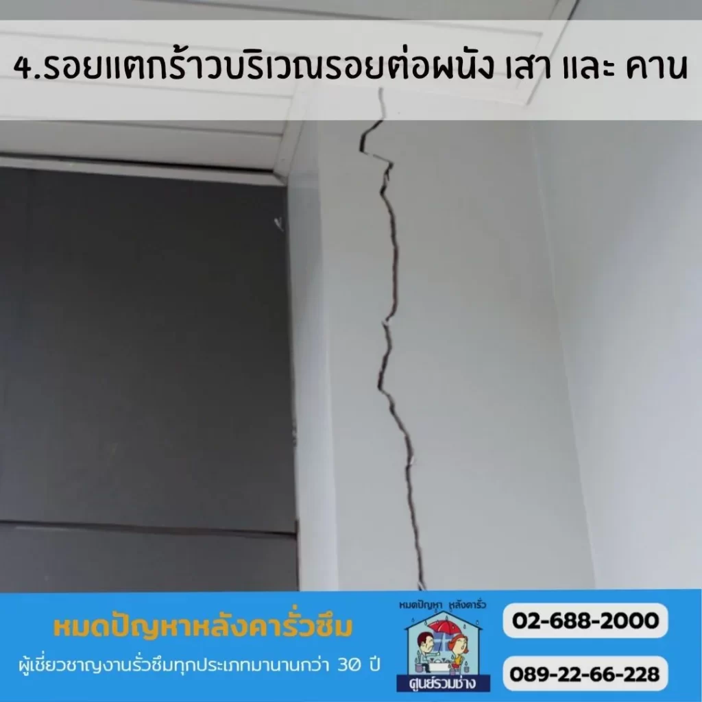 4.รอยแตกร้าวบริเวณรอยต่อผนัง เสา และคาน