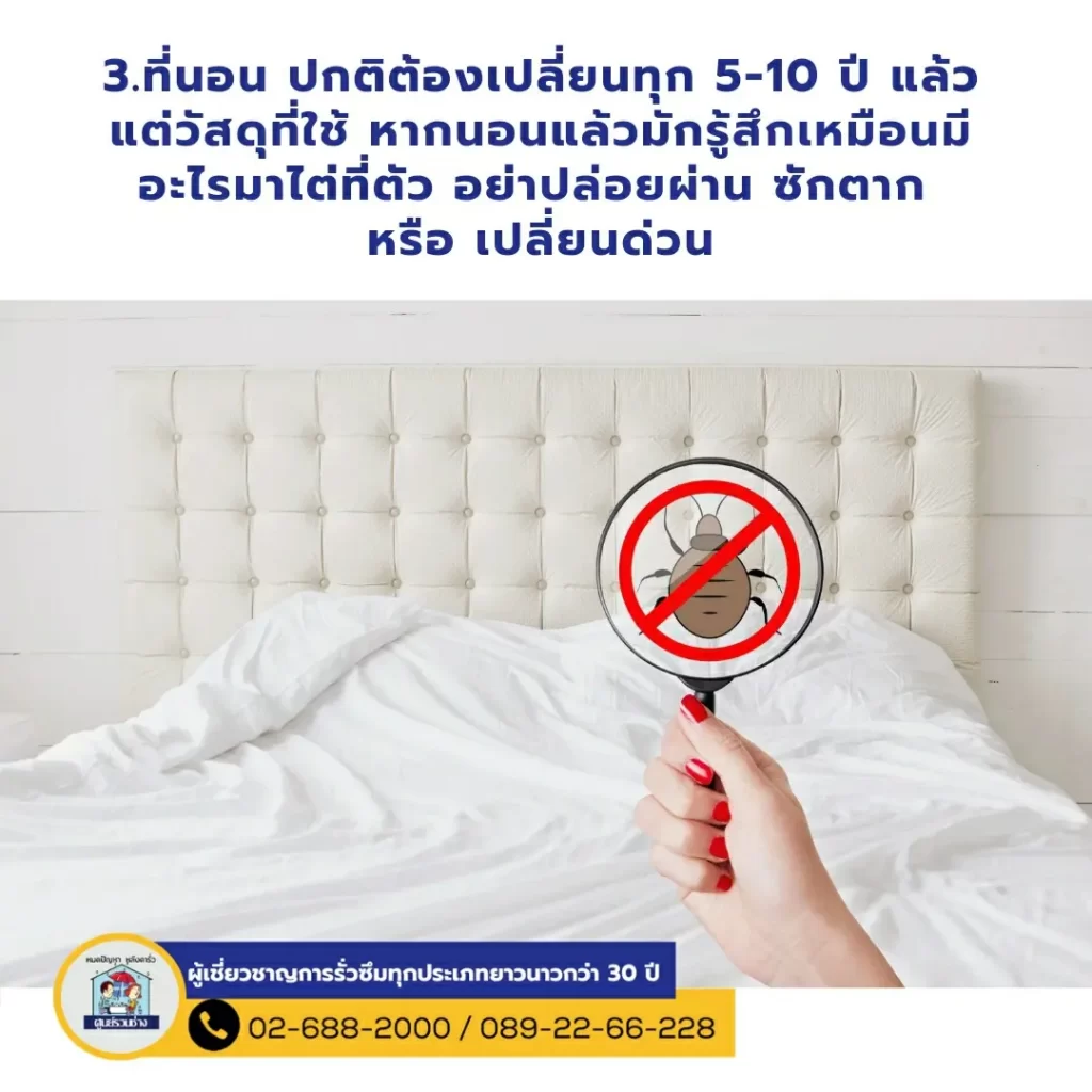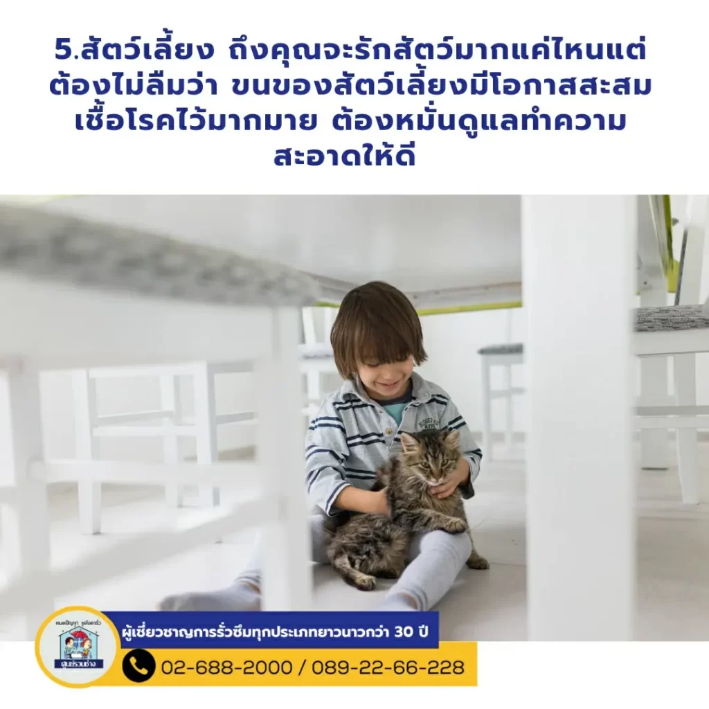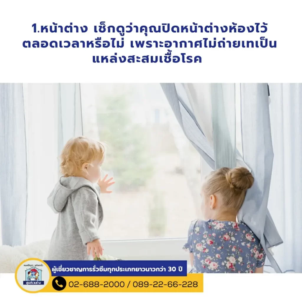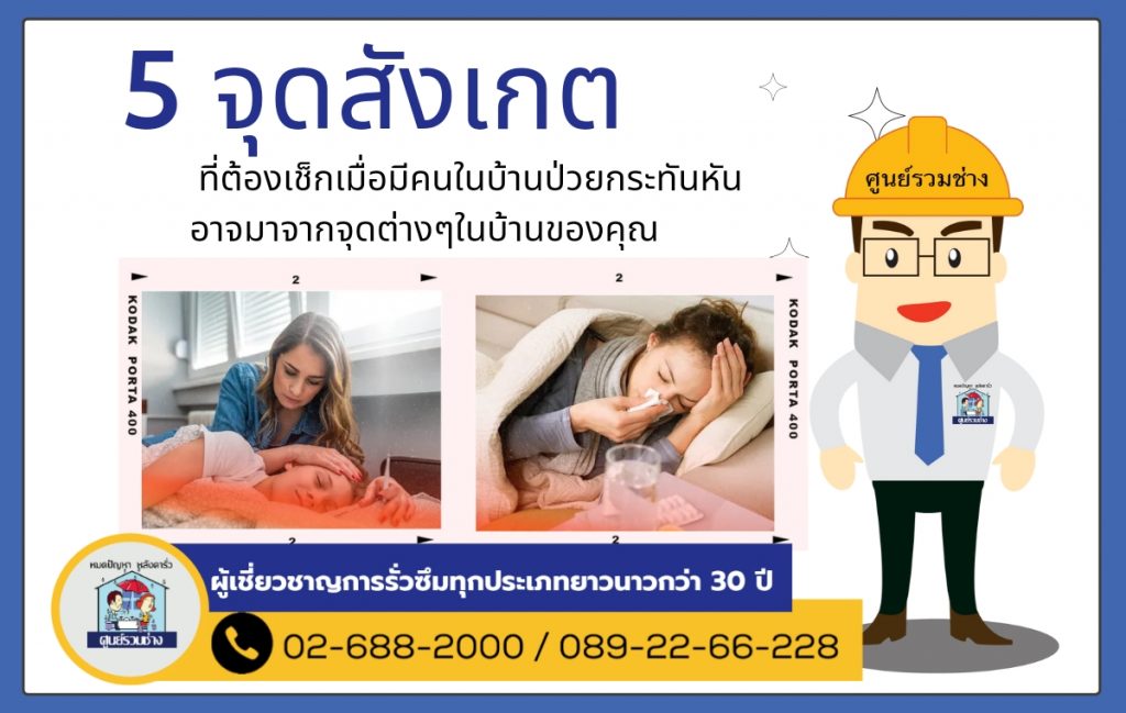 5 จุดสังเกต ที่ต้องเช็กเมื่อมีคนในบ้านป่วยกระทันหัน อาจมาจากจุดต่างๆในบ้านของคุณ 1.หน้าต่าง เช็กดูว่าคุณปิดหน้าต่างห้องไว้ตลอดเวลาหรือไม่ เพราะอากาศไม่ถ่ายเทเป็นแหล่งสะสมเชื้อโรค 2 พรม สำหรับบ้านที่ชอบมีพรมไว้ในบ้าน ต้องหมั่นทำความสะอาดค่ะ เพราะมักมีการสะสมเชื้อโรคที่ติดมากับเท้าของคุณ 3.ที่นอน ปกติต้องเปลี่ยนทุก 5-10 ปี แล้วแต่วัสดุที่ใช้ หากนอนแล้วมักรู้สึกเหมือนมีอะไรมาไต่ที่ตัว อย่าปล่อยผ่าน ซักตาก หรือ เปลี่ยนด่วน4. หมอน เป็นตัวการสำคัญเลยค่ะเพราะสัมผัสศีรษะเราทุกวัน ซึ่งแบคทีเรียเชื้อโรคก็มักมาจากเส้นผม และหนังศีรษะของเราด้วย ทำให้เจ็บคอ ปวดหัว ภูมิแพ้ ต้องหมั่นซักตากแดด 5.สัตว์เลี้ยง ถึงคุณจะรักสัตว์มากแค่ไหนแต่ต้องไม่ลืมว่า ขนของสัตว์เลี้ยงมีโอกาสสะสมเชื้อโรคไว้มากมาย ต้องหมั่นดูแลทำความสะอาดให้ดี 🚩หมดปัญหาการรั่วซึมทุกประเภทตัวอย่างผลงานของศูนย์รวมช่าง : https://bit.ly/2ZIZQ5V.📲TEL. 02-688-2000 ทั้งหมด 20 คู่สาย📲TEL. 089-22-66-228 inbox : m.me/soonruamchang1website : http://www.soonruamchang.com/…………..ศูนย์รวมช่าง ซ่อมหลังคารั่วซึม ดาดฟ้ารั่วซึม ห้องน้ำรั่วซึม โรยตัวซ่อมรั่วอาคารสูง งานรั่วซึมทุกประเภททั้งงานบ้าน องค์กร โกดัง โรงงาน ฯลฯ ด้วยการบริการที่ครบวงจรและเทคโนโลยีที่ทันสมัยรวมถึงกันซึมที่นำเข้าจากต่างประเทศมีความยืดหยุ่นและมีประสิทธิภาพสูง ด้วยประสบการณ์การทำงานด้านรั่วซึมมากกว่า 30 ปี พร้อมรับประกันผลงาน ที่จะทำให้คุณมั่นใจไว้วางใจให้เราดูแล .#งานซ่อมรั่วทุกประเภท #ผนังรั่วซึม #ซ่อมแซมกระเบื้องหลังคารั่วซึม #ปัญหารั่วซึม #น้ำรัว #น้ำซึม #รั่วซึม #ศูนย์รวมช่าง #กันซึม #ดาดฟ้ารั่วซึม #โรยตัว #บ้านรั่วทำไงดี #ห้องน้ำรั่วซึม #ช่างซ่อมหลังคาที่เชี่ยวชาญ #ฝ้าเพดานรั่วซึม #โรยตัวซ่อมแซมผนังตึก #ร้าว #ซึม #รั่ว #น้ำไหล #ปูกระเบื้อง #มุงหลังคา #ซ่อมแซมบริเวณรอยต่อหลังคา #รับประกันสูงสุด3ปี #หาช่างซ่อมหลังคา #ซ่อมหลังคา #ซ่อมหลังคารั่ว #หาช่างซ่อมหลังคารั่ว #กันซึมดาดฟ้า #งานรั่วซึมทุกประเภท
