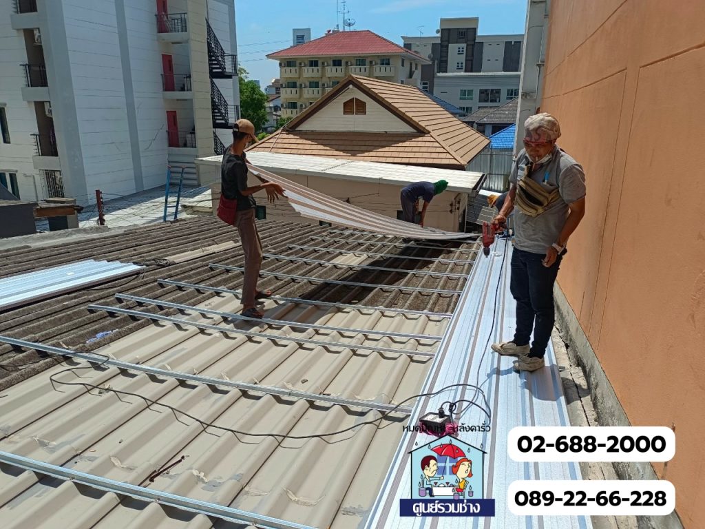 งานมุงหลังคาเมทัลชีททับบนหลังคาเดิม