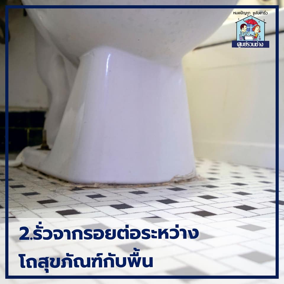 2.รั่วจากรอยต่อระหว่างโถสุขภัณฑ์กับพื้น