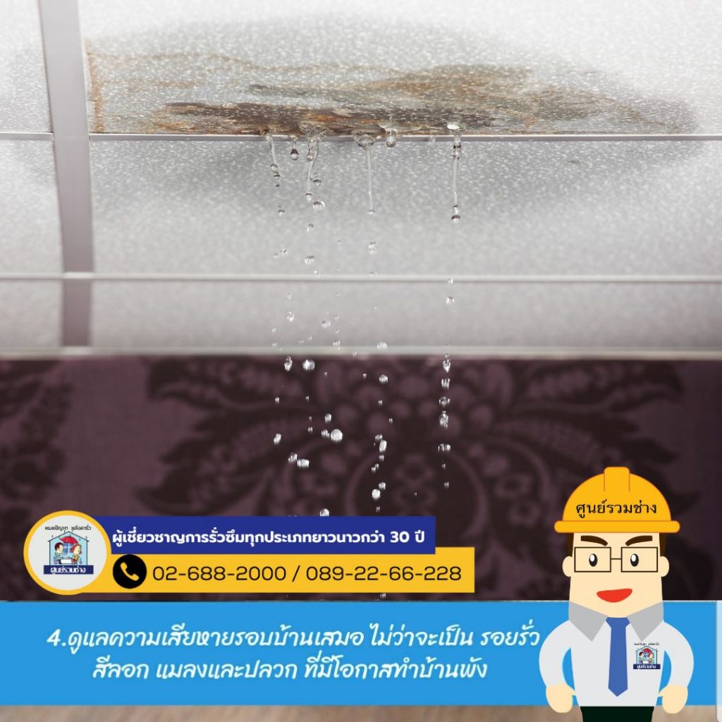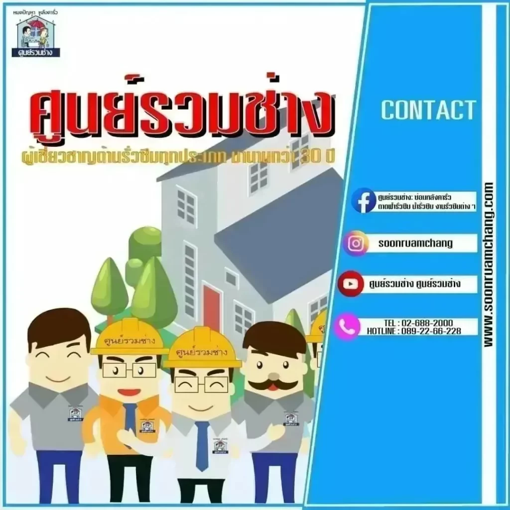 4 วิธีรักษาบ้านให้แข็งแรง น่าอยู่ 1.ตรวจสอบการรั่วซึมของหลังคาบ้าน อย่าปล่อยให้ฝ้า เพดาน ได้รับควาทเสียหาย เราสามารถแก้ไขได้เร็วที่สุด .2.ไม่ควรทิ้งขยะลงท่อน้ำทิ้งทุกที่ในบ้าน ป้องกันการอุดตัน เตรียมถุงขยะไว้ ช่วยลดค่าใช้จ่ายเวลาซ่อมแซมท่อด้วยนะ .3.หมั่นเช็คสภาพปลั๊กไฟเสมอ หากพบรอยชำรุดเสียหายอย่าปล่อยไว้ เพื่อป้องกันไฟฟ้าลัดวงจร ไฟรั่ว ไฟช็อต ควรรีบซ่อมทันที .4.ดูแลความเสียหายรอบบ้านเสมอ ไม่ว่าจะเป็น รอยรั่ว สีลอก แมลงและปลวก ที่มีโอกาสทำบ้านพัง …………..🚩หมดปัญหาการรั่วซึมทุกประเภทตัวอย่างผลงานของศูนย์รวมช่าง : https://bit.ly/2ZIZQ5V……👨🔧ผู้เชี่ยวชาญด้านรั่วซึมทุกประเภทมานานกว่า 30 ปี📲TEL. 02-688-2000 ทั้งหมด 20 คู่สาย📲TEL. 089-22-66-228 inbox : m.me/soonruamchang1website : http://www.soonruamchang.com/…………..ศูนย์รวมช่าง ซ่อมหลังคารั่วซึม ดาดฟ้ารั่วซึม ห้องน้ำรั่วซึม โรยตัวซ่อมรั่วอาคารสูง งานรั่วซึมทุกประเภททั้งงานบ้าน องค์กร โกดัง โรงงาน ฯลฯ ด้วยการบริการที่ครบวงจรและเทคโนโลยีที่ทันสมัยรวมถึงกันซึมที่นำเข้าจากต่างประเทศมีความยืดหยุ่นและมีประสิทธิภาพสูง ด้วยประสบการณ์การทำงานด้านรั่วซึมมากกว่า 30 ปี พร้อมรับประกันผลงาน ที่จะทำให้คุณมั่นใจไว้วางใจให้เราดูแล .#งานซ่อมรั่วทุกประเภท #ผนังรั่วซึม #ซ่อมแซมกระเบื้องหลังคารั่วซึม #ปัญหารั่วซึม #น้ำรัว #น้ำซึม #รั่วซึม #ศูนย์รวมช่าง #กันซึม #ดาดฟ้ารั่วซึม #โรยตัว #บ้านรั่วทำไงดี #ห้องน้ำรั่วซึม #ช่างซ่อมหลังคาที่เชี่ยวชาญ #ฝ้าเพดานรั่วซึม #โรยตัวซ่อมแซมผนังตึก #ร้าว #ซึม #รั่ว #น้ำไหล #ปูกระเบื้อง #มุงหลังคา #ซ่อมแซมบริเวณรอยต่อหลังคา #รับประกันสูงสุด3ปี #หาช่างซ่อมหลังคา #ซ่อมหลังคา #ซ่อมหลังคารั่ว #หาช่างซ่อมหลังคารั่ว #กันซึมดาดฟ้า #งานรั่วซึมทุกประเภท