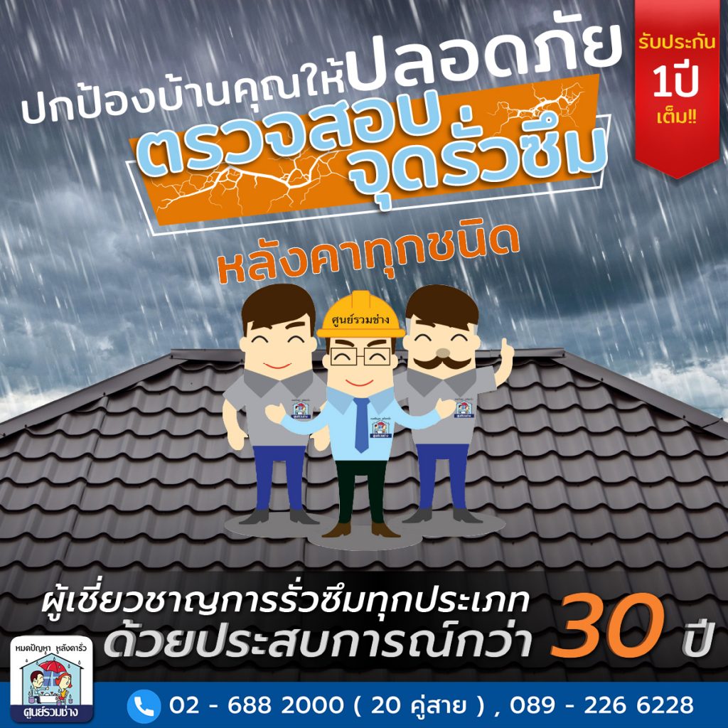 ศูนย์รวมช่าง ซ่อมหลังคารั่วซึม ดาดฟ้ารั่วซึม ห้องน้ำรั่วซึม โรยตัวซ่อมรั่วอาคารสูง งานรั่วซึมทุกประเภททั้งงานบ้าน องค์กร โกดัง โรงงาน ฯลฯ ด้วยการบริการที่ครบวงจรและเทคโนโลยีที่ทันสมัยรวมถึงกันซึมที่นำเข้าจากต่างประเทศมีความยืดหยุ่นและมีประสิทธิภาพสูง ด้วยประสบการณ์การทำงานด้านรั่วซึมมากกว่า 30 ปี พร้อมรับประกันผลงาน ที่จะทำให้คุณมั่นใจไว้วางใจให้เราดูแล