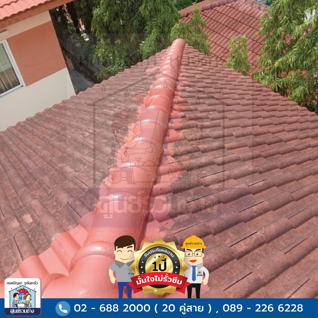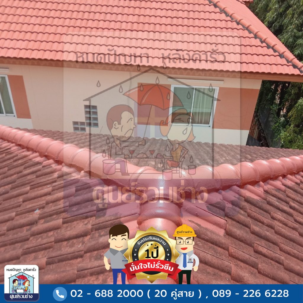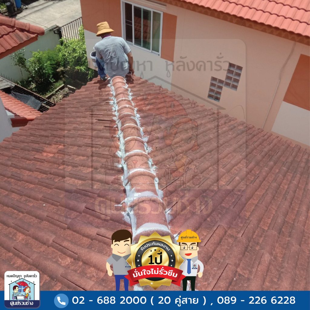 งานซ่อมแซมหลังคารั่วซึมบริเวณสันครอบหลังคาทั้งหมด