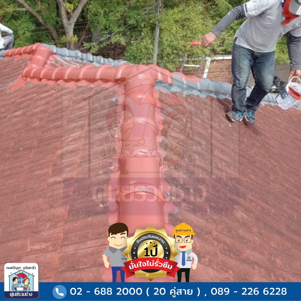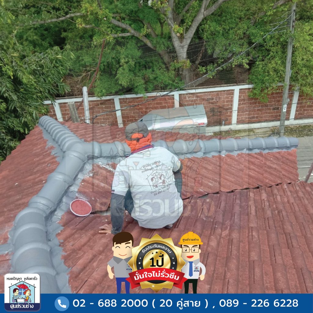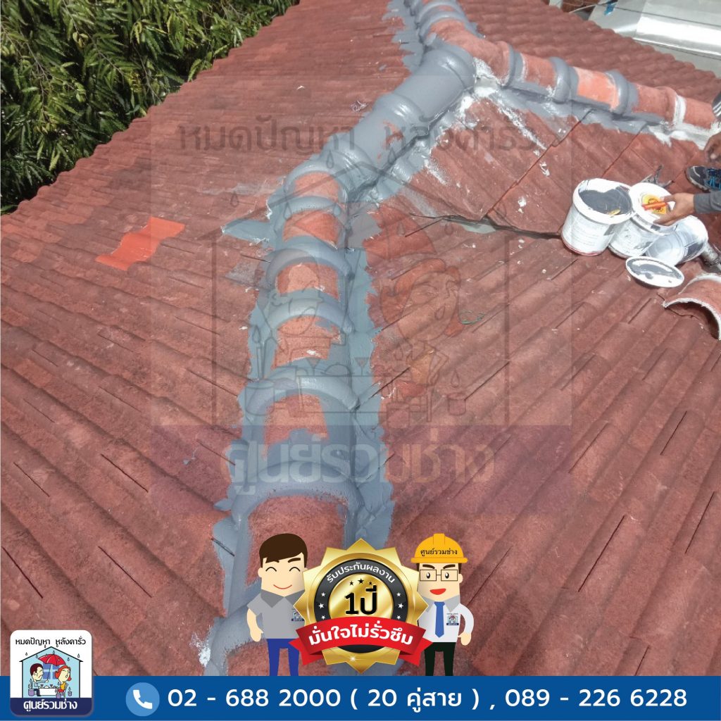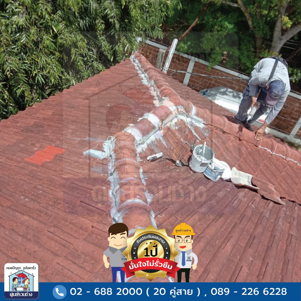 งานซ่อมแซมหลังคารั่วซึมบริเวณสันครอบหลังคาทั้งหมด