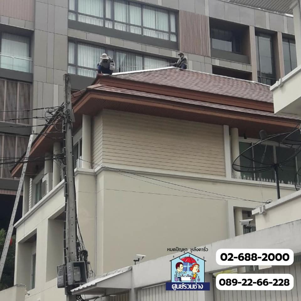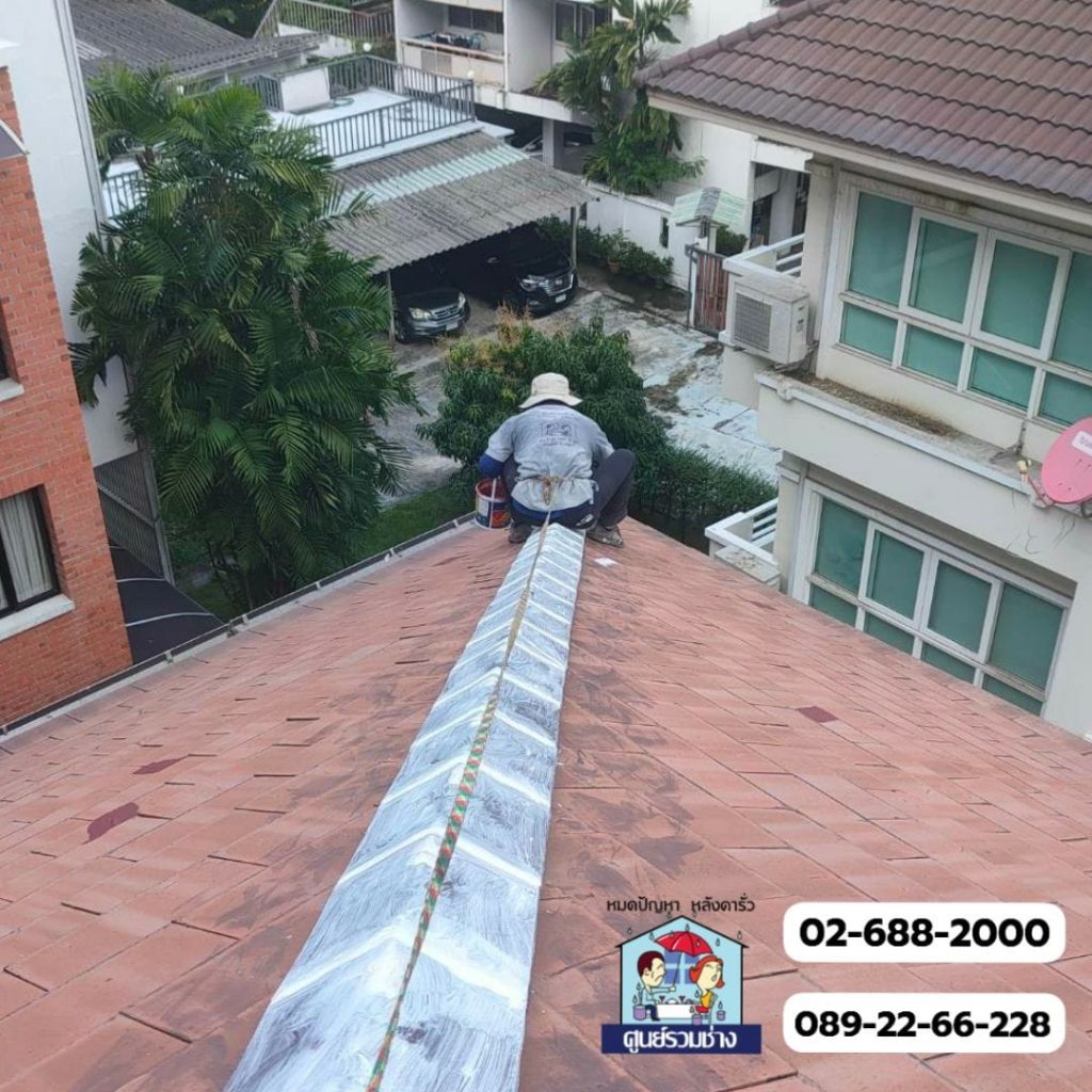 งานซ่อมแซมหลังคารั่วซึมบริเวณสันครอบกลางและสันตะเข้