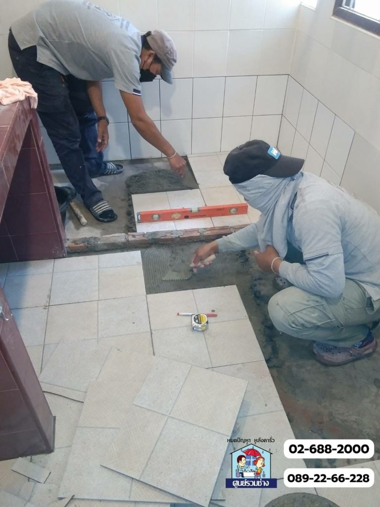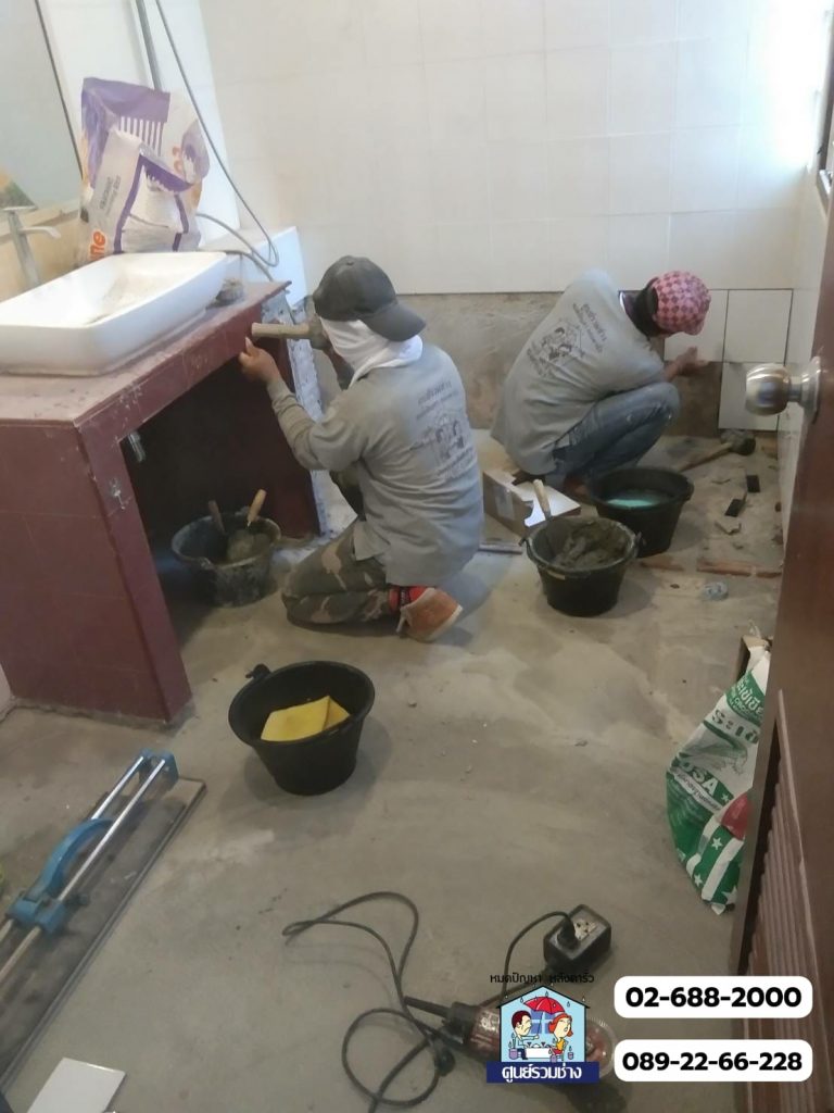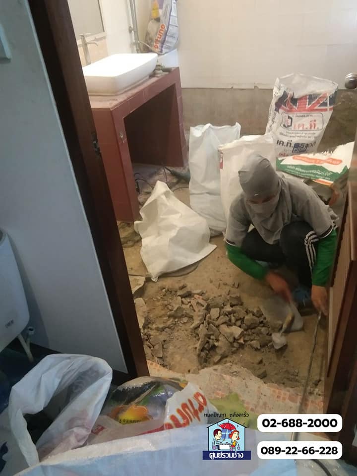 -รื้อกระเบื้องพื้นเดิมออกขนทิ้ง-เทพื้นปรับระดับผสมน้ำยากันซึม