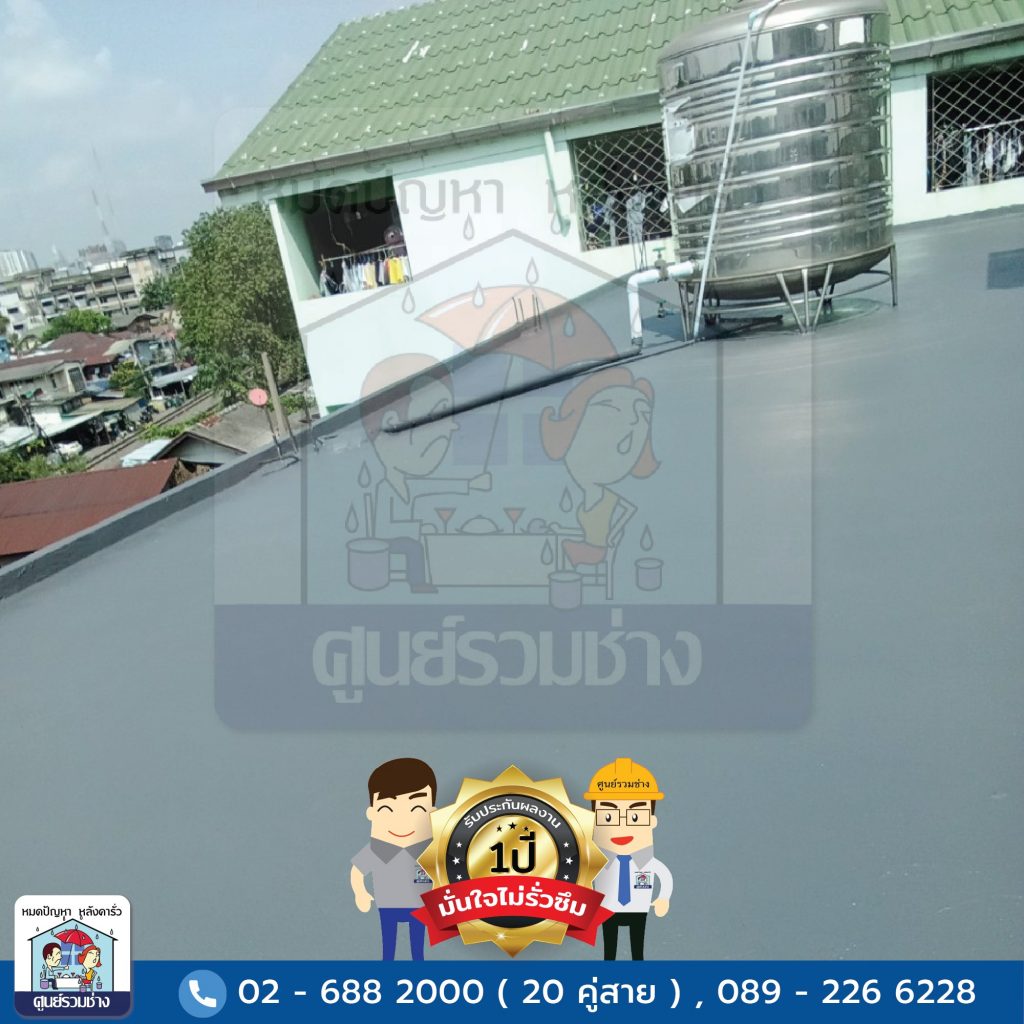 งานซ่อมแซมทำกันซึมพื้นดาดฟ้าด้วยกันซึมระบบพียู