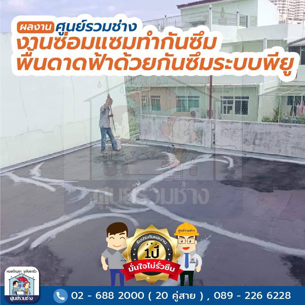 งานทำกันซึมพื้นดาดฟ้าด้วยกันซึมระบบพียู