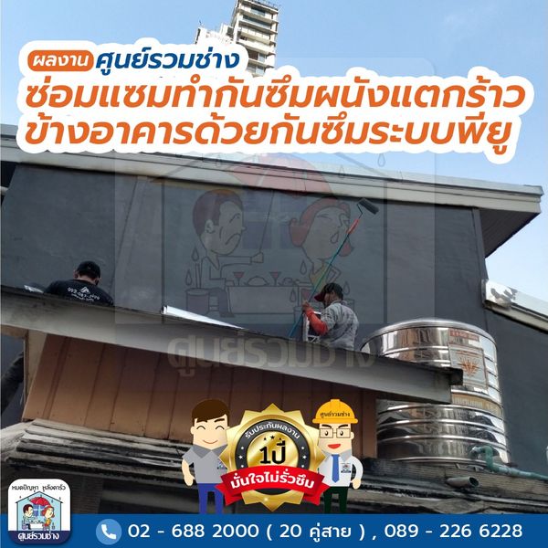 ศูนย์รวมช่าง ซ่อมหลังคารั่วซึม ดาดฟ้ารั่วซึม ห้องน้ำรั่วซึม โรยตัวซ่อมรั่วอาคารสูง งานรั่วซึมทุกประเภททั้งงานบ้าน องค์กร โกดัง โรงงาน ฯลฯ ด้วยการบริการที่ครบวงจรและเทคโนโลยีที่ทันสมัยรวมถึงกันซึมที่นำเข้าจากต่างประเทศมีความยืดหยุ่นและมีประสิทธิภาพสูง ด้วยประสบการณ์การทำงานด้านรั่วซึมมากกว่า 30 ปี พร้อมรับประกันผลงาน ที่จะทำให้คุณมั่นใจไว้วางใจให้เราดูแล