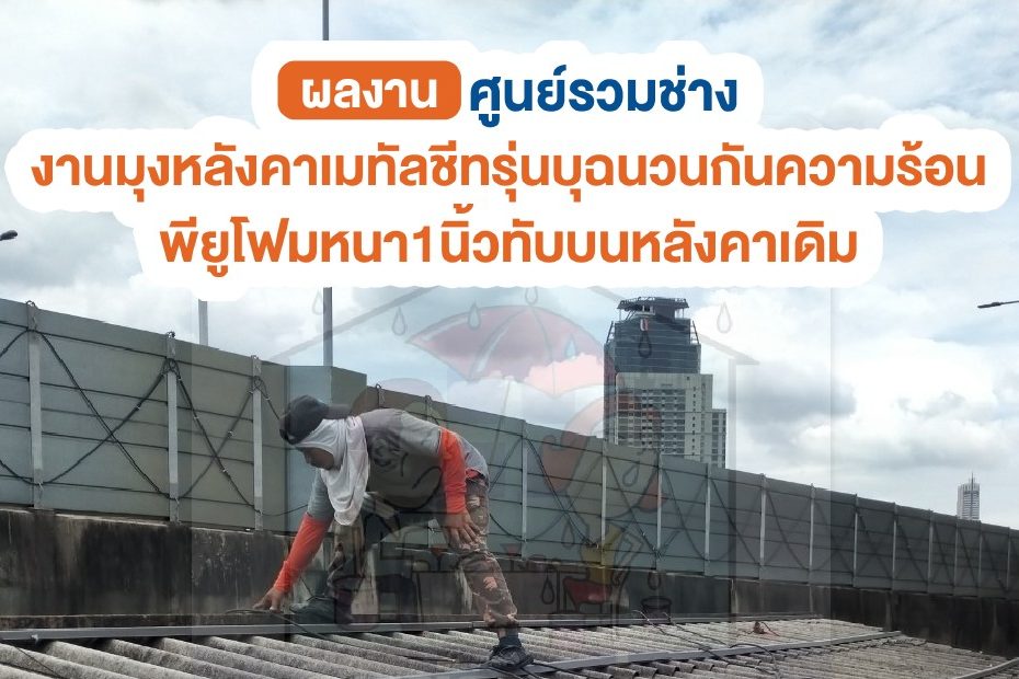 งานมุงหลังคาเมทัลชีทรุ่นบุฉนวนกันความร้อนพียูโฟมหนา 1 นิ้วทับบนหลังคาเดิม
